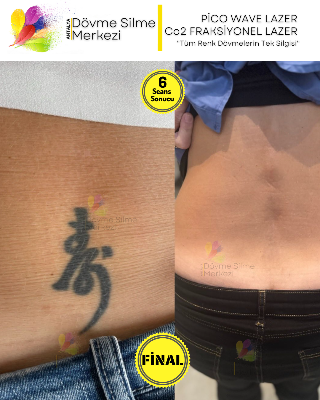 Ayrıca klinik olarak silinmeyi %30 oranında arttırdığı kanıtlanmış Co2 Fraksiyonel Lazer ile de silme işlemlerini desteklemekteyiz.