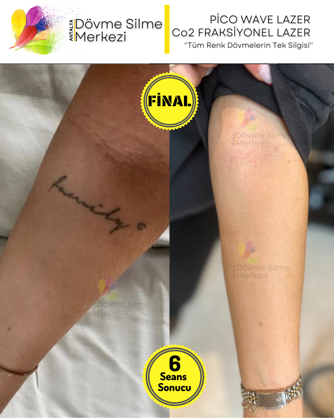 Bu anlamda Türkiye’de ilk ve tek yenilikçi dövme silme merkezi olmanın haklı gururunu yaşıyoruz.